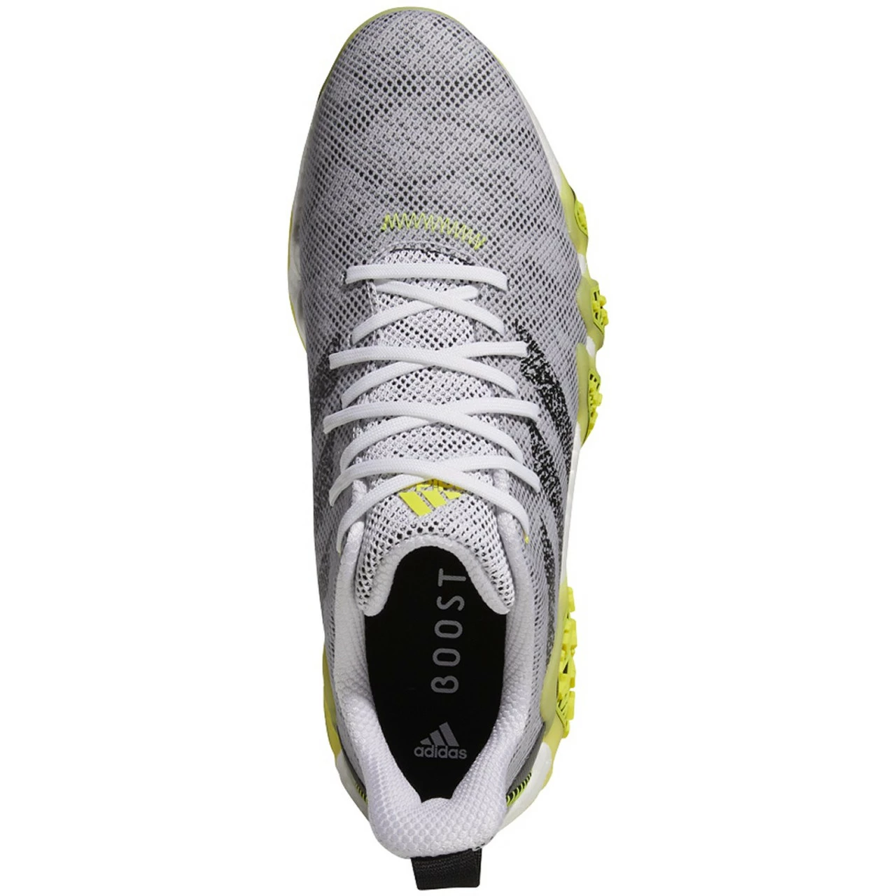 These men’s adidas golf shoes are designed for performance on the links. The full-length BOOST midsole delivers energy return with every step. The spikeless outsole features Twist Grip traction with sidewall wraps for enhanced support. The mesh upper has an added film to provide waterproof protection and keep the shoe clean. Made with a series of recycled materials, and at least 50% recycled content, this product represents just one of our solutions to help end plastic waste.