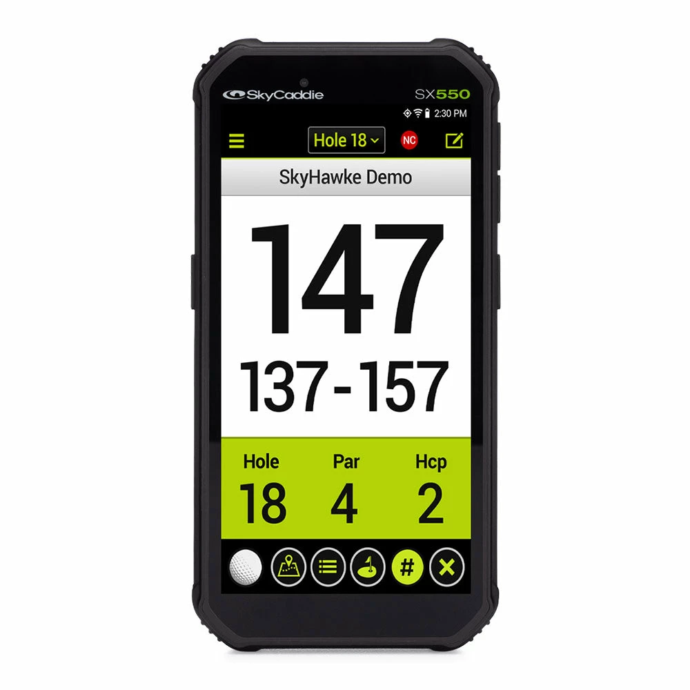 The SkyCaddie SX550 has a larger 5.5″ LCD high-definition capacitive color touch screen to provide more viewing screen. It is driven by an ultra-fast multi-core processor for fast response.